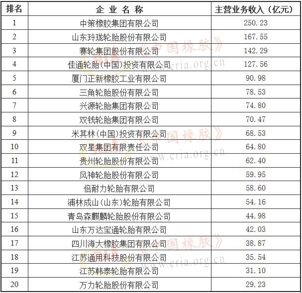 5月28日,中國橡膠工業(yè)協(xié)會(huì)在中國橡膠年會(huì)上發(fā)布了“2020年度中國橡膠工業(yè)百強(qiáng)企業(yè)”名單。該名單以2018年第四季度+2019年前三季度主營業(yè)務(wù)收入合計(jì)數(shù)進(jìn)行排序,并經(jīng)網(wǎng)上公示等程序,共有137家橡膠企業(yè)被列入“2020年度中國橡膠工業(yè)百強(qiáng)企業(yè)”。名單如下: