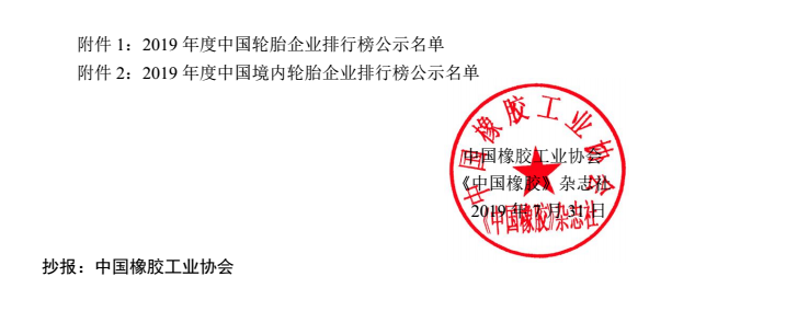 中國橡膠工業(yè)協(xié)會《中國橡膠》雜志社享有“中國輪胎企業(yè)排名”活動的所有權(quán),任何單位和個人不得將此次公示數(shù)據(jù)用于商業(yè)活動或以其他方式使用。